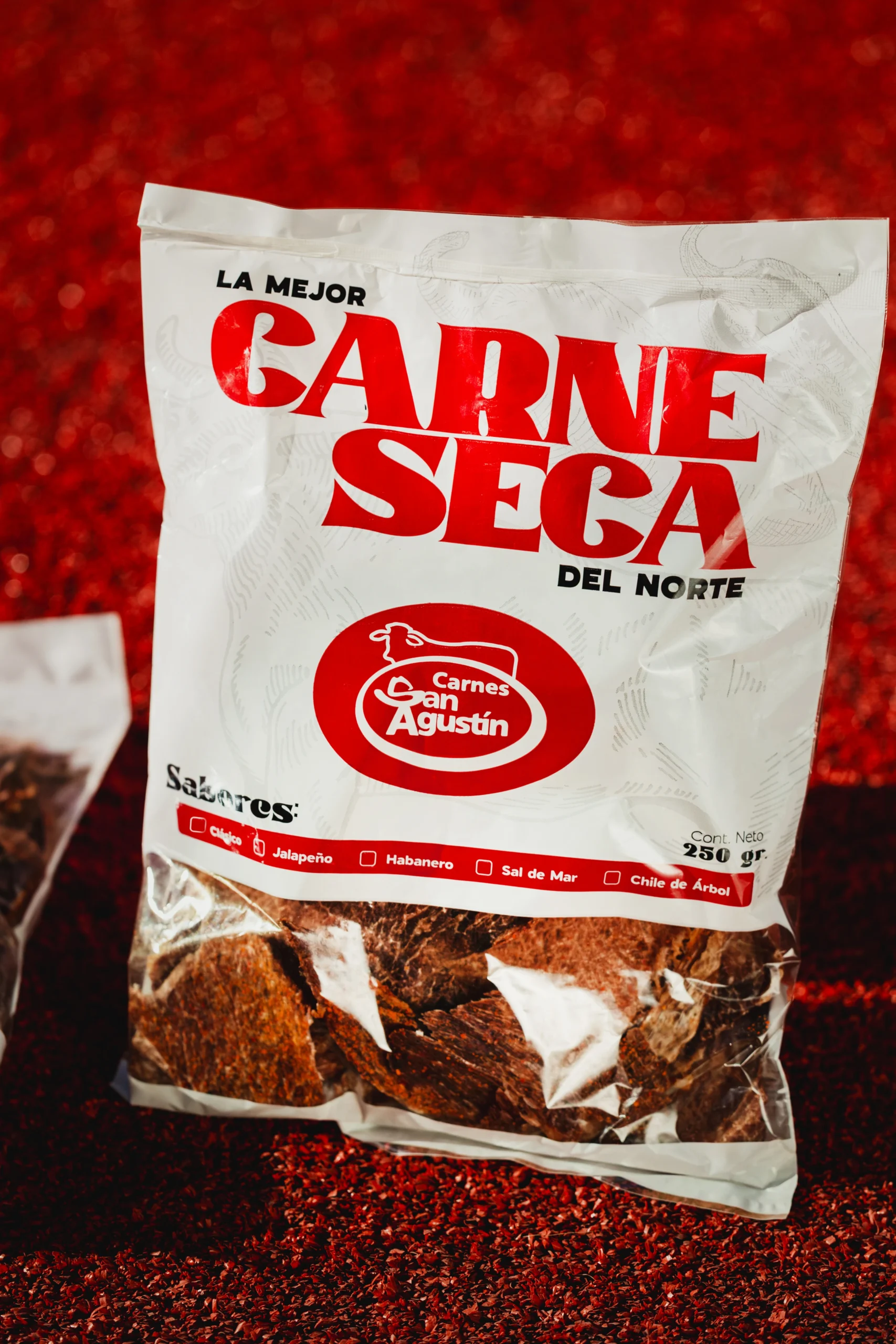 Despierta tu paladar con el sabor auténtico y exclusivo de Carne San Agustín. Nuestra carne seca sabor clásico está meticulosamente preparada con un adobo especial que fusiona notas de limón, sal de mar y una selección de chiles secos, creando una explosión de sabor sin picante pero cargada de personalidad.